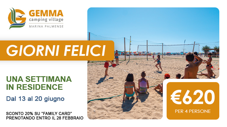 Pubblicato su Erica RVerificata Top come camping e come animazione Le mie vacanze da 10 anni,non cambierei per nessun motivo.Puoi come me stare senza macchina, arrivi in treno e poi o un taxi o a piedi arrivi al camping dove ti riceve Lorella ,Gemma e Daniela con il loro modo familiare,camping fornito di ogni confort,pulito spiaggia libera o privata molto economica io ho scelto questa soluzione.puoi passeggiare grazie alla super strada ciclo pedonale e arrivare ai paesi vicini.Top per vacanze rilassante.Quest'anno animazione top,ragazzi che sono rimasti nel cuore perché professionali ma nello stesso tempo un valido supporto per i ragazzi,mi hanno dato quell'energia giusta per affrontare un anno di lavoro e sacrifici,mi hanno arricchito il cuore.un grazie a Nicholas,Gabriel,Mattia e Rebecca dalla vostra mamma Erica come mi avete voluto bene voi penso nessuno.Pubblicato su Lucia RVerificata Posto stupendo..vacanza top Posto stupendo... casetta al top..comoda, pulita, come sentirsi a casa... tanto spazio all'esterno..sia per mangiare che per rilassarsi... ottimo posto..mare bellissimo..spiaggia organizzata in tutto per tutto.. personale super gentile, animazione stratosferica... bravi tutti... ci torniamo il prossimo anno...Pubblicato su Elena SVerificata TOP...TUTTO PERFETTO Abbiamo soggiornato in questo bellissimo campeggio...che dire...tutto perfetto. Gentilezza, competenza, simpatia., pulizia...tutto il top. Facciamo i complimenti a tutti. Ritorneremo anche l' anno prossimo..grazie della splendida vacanza.Pubblicato su ascanio sVerificata Camping Gemma Abbiamo soggiornato in questo campeggio per tutto il mese di agosto con la nostra roulotte e ci siamo trovati molto bene. Le piazzole erano confortevoli e ben tenute, ideali per una lunga permanenza in famiglia. L’ambiente è accogliente e rilassante, con servizi comuni curati e sempre puliti. Una nota di merito speciale va ai quattro animatori, che con simpatia ed energia hanno saputo coinvolgere grandi e piccoli, rendendo le giornate ancora più piacevoli. Il personale si è dimostrato disponibile e attento, contribuendo a creare un clima sereno durante tutta la vacanza. In generale, un’esperienza positiva che consigliamo a chi cerca un campeggio adatto alle famiglie.Pubblicato su Matteo DVerificata divertimento e relax esperienza ottima,non è la prima volta che vengo qui e devo dire che mi sono sempre trovato bene ma quest’anno rispetto agli altri è stato altrettanto divertente,un ringraziamento agli animatori(sempre disponibili) ristorante ottimo e bagni puliti.Pubblicato su andrea sVerificata Estate fantastica al camping Gemma Il miglior campeggio in cui sono stato finora, sia per l’ospitalità delle persone, per il mare ma soprattutto per l’animatori molto simpatici e unici che si sono impegnati tantissimo a intrattenere la gente con giochi, baby dance e balli di gruppo fantastici.Pubblicato su Simone NVerificata . campeggio pulito e molto bello e animatori simpatici e disponibili,ristorante veramente ottimo e disponibile,bagni molto ben curatiPubblicato su Andrea MVerificata Grazie mille Il camping Gemma ci ospita ormai da 3 anni e oltre alla ritrovata gentilezza, professionalità e competenza quest'anno abbiamo vissuto un ottima esperienza con lo staff di animazione, tutti nessuno escluso hanno saputo regalarci momenti di spensieratezza e di divertimento.... Grazie mille e spero di ritrovarvi l'anno prossimo....Pubblicato su Aprilrain90Verificata Estate 2025 indimenticabile,animazione TOP ! Estate 2025...l'estate perfetta! È già il terzo anno consecutivo che sono ospite di questa struttura..il villaggio /camping che è molto ben organizzato,direttamente sul mare e con tutti i servizi necessari! Quest'anno però la differenza l'ha fatta l'animazione che è stata stupenda! I ragazzi dell'animazione tutti fantastici a partire dal Capo animatore Nicolas, l'animatrice del miniclub Rebecca, poi Gabriel, Mattia...Tutti preparati e disponibili. Ci hanno fatto vivere un clima di gioia,giochi , convivialità, famiglia...insomma un'estate indimenticabile che resterà per sempre nei nostri cuori!